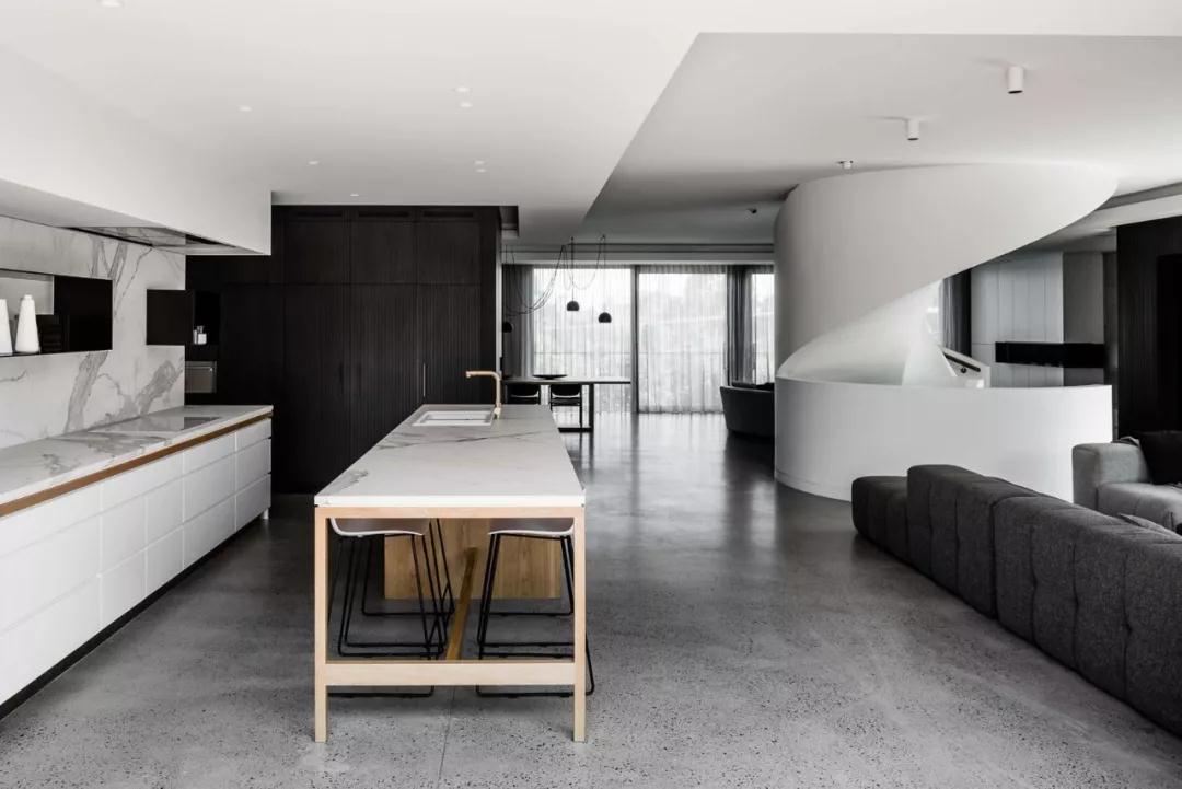 深圳裝修公司設計事務所,利用形式、紋理和對比來創造一個優雅豪華的家庭住宅,直條的力量與弧線的柔和,混凝土的剛強與原木的溫柔,一場力與柔的較量上演。。。。