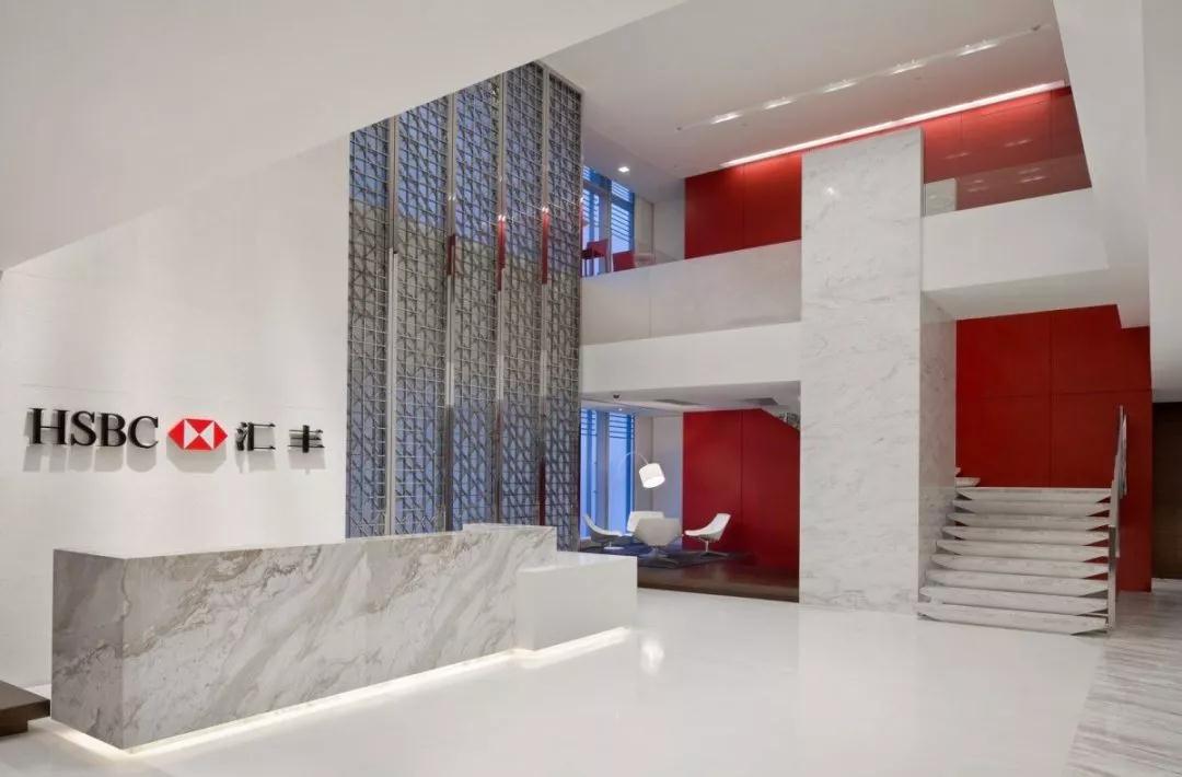 在匯豐銀行辦公室裝修室內(nèi)設計項目提案中,深圳裝修公司設計團體重點突出了匯豐的品牌形象。