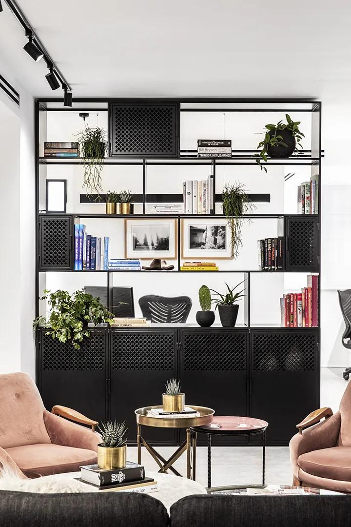 現代照明,復古地毯,棉布窗簾,用于墻壁裝飾的本地藝術攝影,植物,書籍和其他配件等,使該寫字樓裝修設計空間煥發出舒適的居家氛圍。