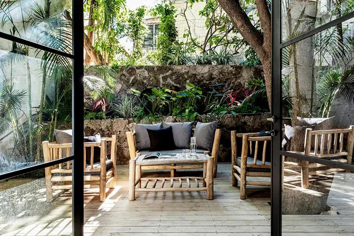 穿過會議室進入后院,使舊的室外防腐木地板,茂密的植被和景觀結構成為可能,深圳裝飾公司配備了寬闊而粗糙的室外木制家具,打造了一個家庭花園。