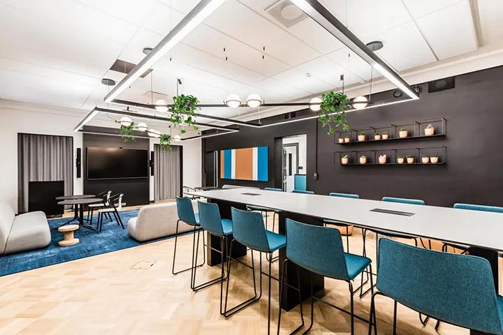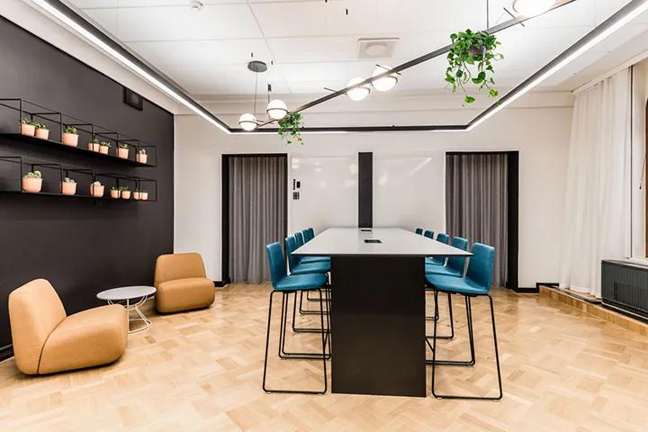 該案例是一家軟件平臺公司,可幫助客戶更準確地進行銷售和市場推廣。裝飾設計的挑戰是建筑與現代辦公環境的結合,以及與當代品牌形象的結合。員工的參與對于設計至關重要。在項目開始時,各種研討會,調查表和激烈的辯論為最終的設計決策奠定了基礎。每個人對新環境的代表要求是創造一個舒適而獨特的空間環境,以展示企業的價值和可持續性。通過對企業文化和經營實踐的深入了解,裝修設計團隊采用醒目的色彩,舒適實用的家具,個性化的燈光和藝術氛圍,最終營造出優雅,現代,愉悅的工作氛圍。