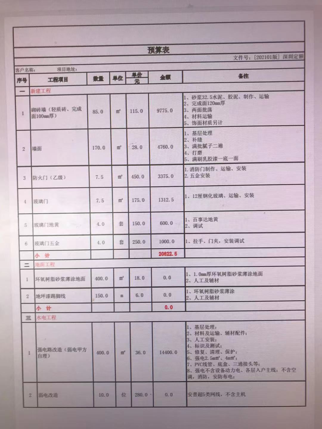 深圳裝修報(bào)價(jià)單明細(xì)表