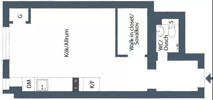 裝修公司在設計迷你小戶型,我們難道就不能擁有獨立更衣間嗎?裝飾公司設計師有效利用25㎡窄長格局,從中設置一道淺隔間,刻意不做滿的墻面,不僅界分出收納量十足的多用更衣間,亦加設樓梯往上延伸出柔軟舒適的臥眠區,墻面另一側則增添層架做為風格展示墻,以一體多用設計提升實用機能。